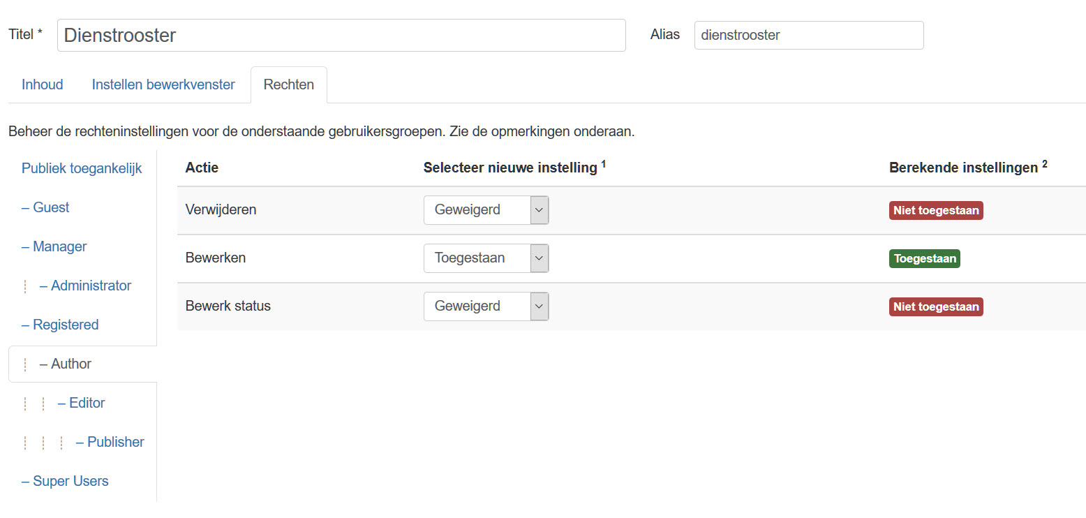 Ik heb de persoon in kwestie de status gegeven van : Author - Editor en Publisher.