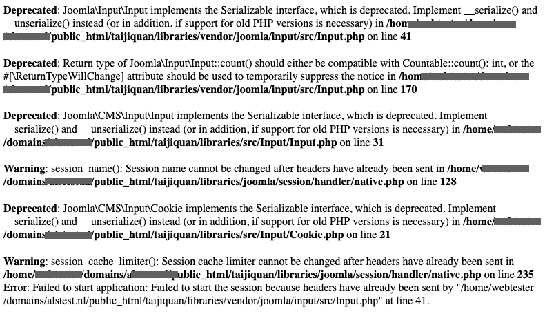 Een wat oudere website kan nog wel php 8.0 aan, maar bij 8.1 komen er een hoop foutmelding. Die wil ik graag wegwerken (alvorend upgraden naar J4), maar helaas weet ik echt niet wat ik hiermee aan moet. Het lijkt deels met Joomla zelf van doen te hebben.